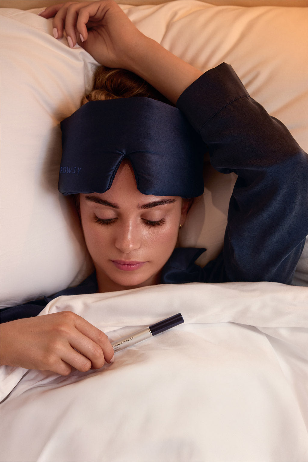 Secure Eyelash Protecting Mask over eyes and lashes. Drift off into restorative beauty sleep.